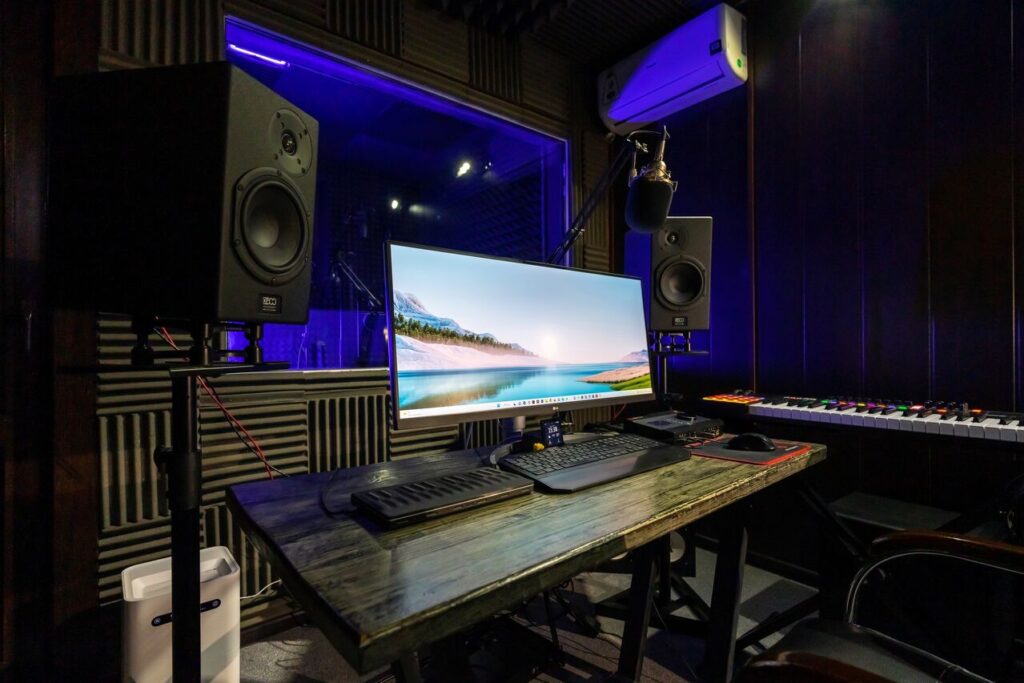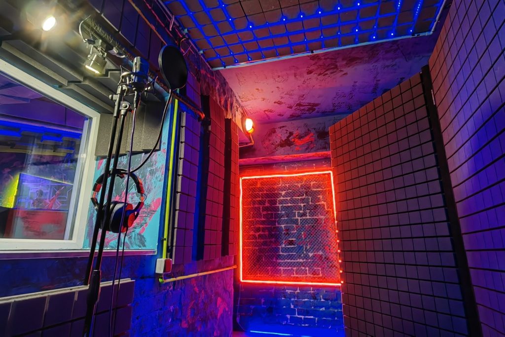 Пространство имеет правильную геометрическую форму для профессиональной записи голоса. Техника для звукозаписи вокала и инструментов топового уровня.